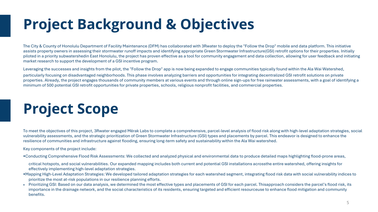 Use the arrows to navigate the following presentation on GSI in the Ala Wai Watershed.